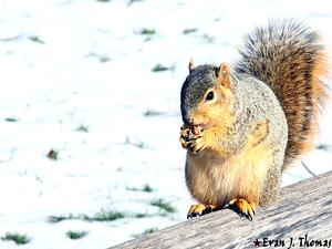 Squirrel perched up on a fence gathering his food for winter @EvanJPhoto1